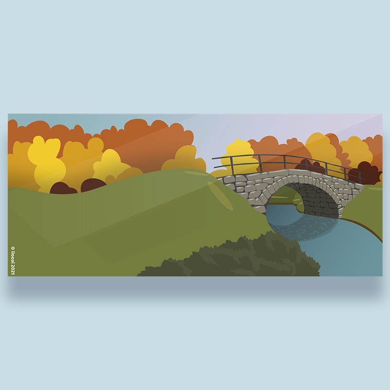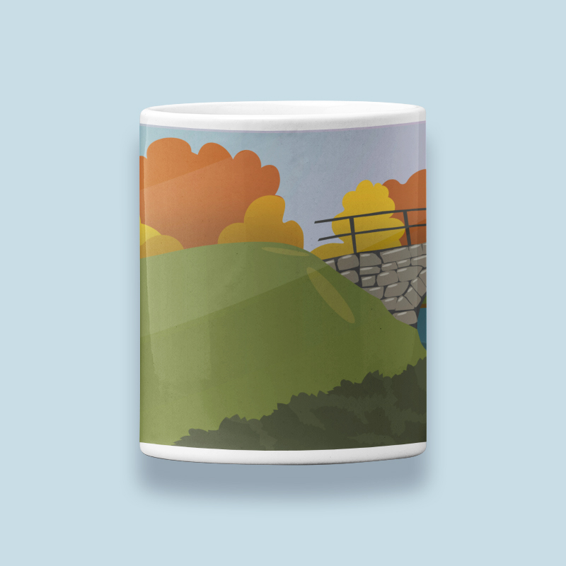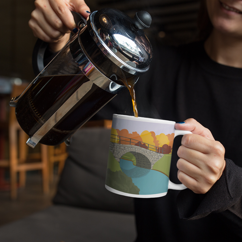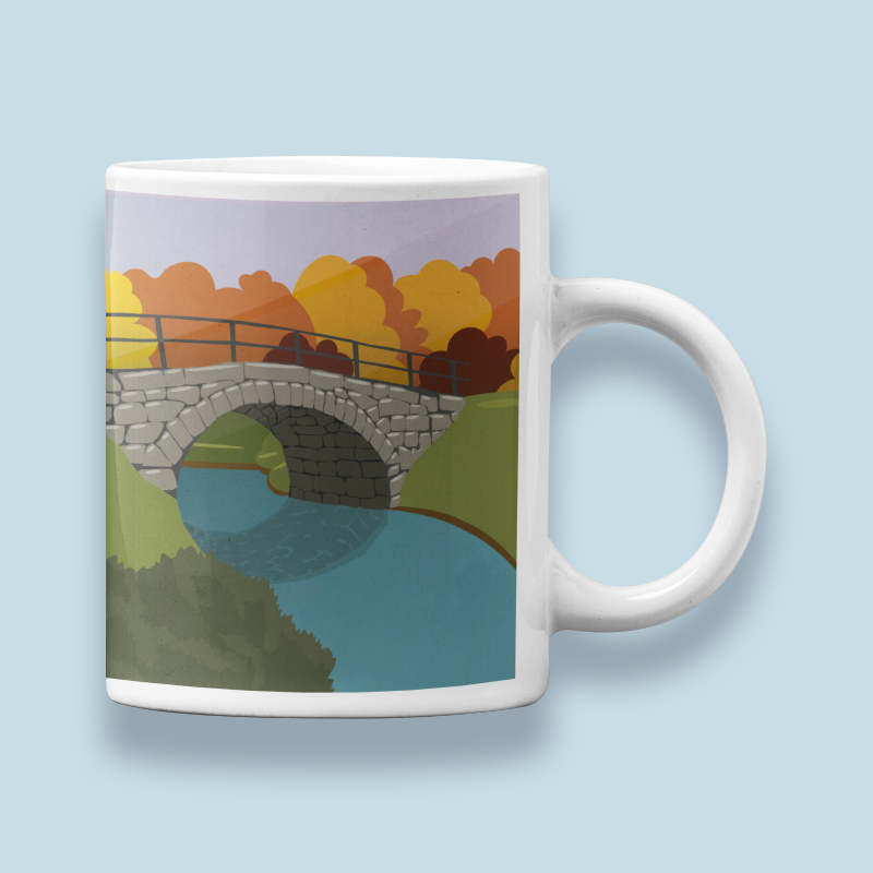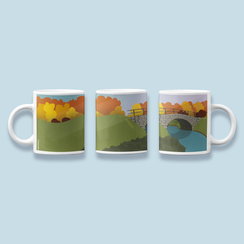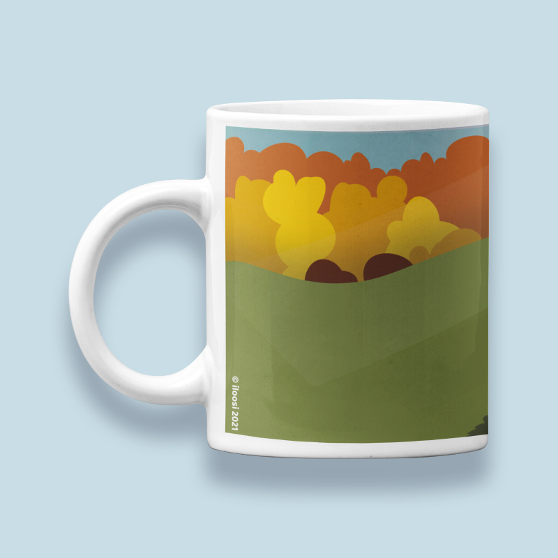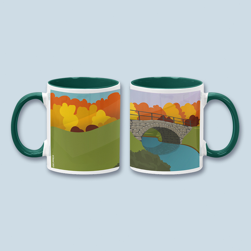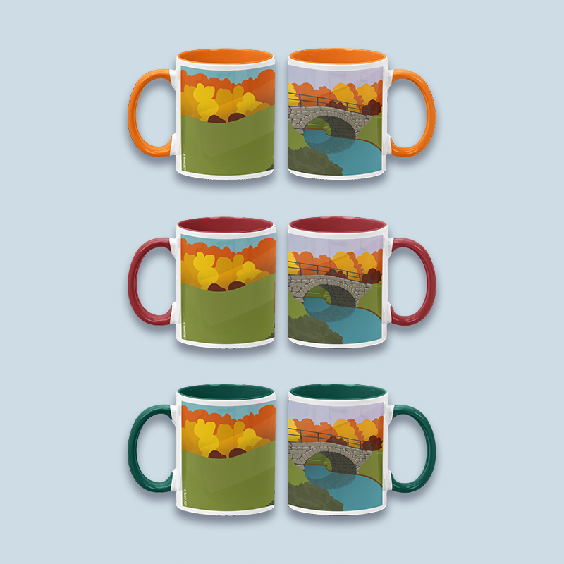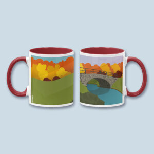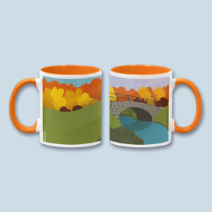 Kivisilta syksyllä -keraaminen muki, jossa syksyinen värimaailma. Useita värivaihtoehtoja.